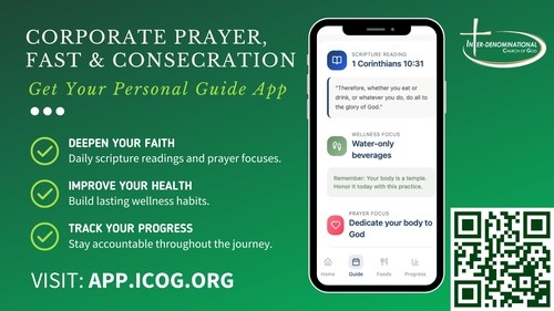 The Inter-denominational Church of God (ICOG) is glad that you are joining us from January 5–23, 2026 for a season of intentional prayer, fasting, and spiritual growth. This journey will help you:
